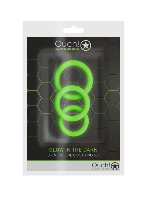 Ten zestaw pierścieni na penisa zawiera pierścienie w trzech rozmiarach, które są wygodne i elastyczne. Pierścienie poprawią Twoją sprawność seksualną i dadzą Ci mnóstwo możliwości ze względu na swoją elastyczność. Ouch!! Produkty świecące w ciemności muszą zostać aktywowane pod wpływem światła słonecznego, zanim będzie można cieszyć się nimi w ciemności.