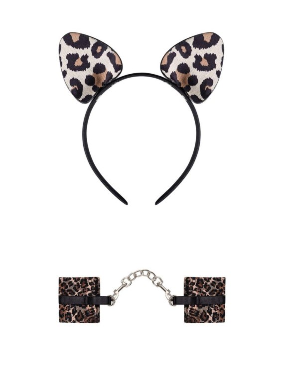 Wow, co za kocica! Teraz możesz się cieszyć kuszącą panterką, która tego wieczoru rozgrzeje Cię jeszcze bardziej. Bądź wyjątkowo drapieżna i czuj się seksownie z kompletem Tigerlla, który doda Ci pewności siebie we flirciarskim, ale kuszącym stylu. Podkreśl swój charakter i wyglądaj zmysłowo, nosząc tę opaskę i kajdanki w towarzystwie intrygująco obsessyjnej bielizny!