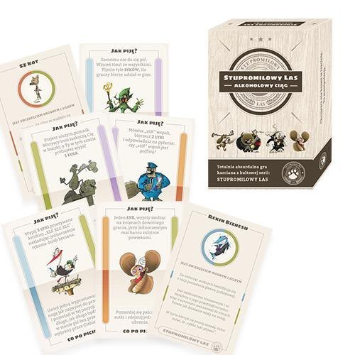 Idea robienia komuś KU-KU doczekała się publikacji w postaci stupromilowej karcianki - pod znamiennym tytułem Alkoholowy Ciąg. Wykładając karty, tworzysz sposób w jaki kolejny gracz ma się napić. Być może będzie musiał popłynąć jak rekin z płynem w ustach, albo w kilka sekund zdjąć sobie skarpetki popijając trunek. Totalnie absurdalna gra karciana z kultowej serii Stupromilowy Las. 58 kart postaci, które przeniosą Cię w najwyższy poziom abstrakcji imprezowej.