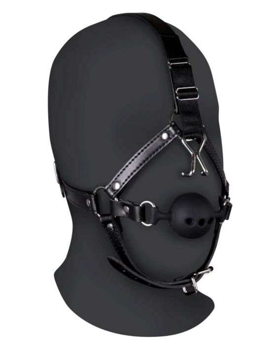 Head Harness with Breathable Ball Gag and Nose Hooks - Black