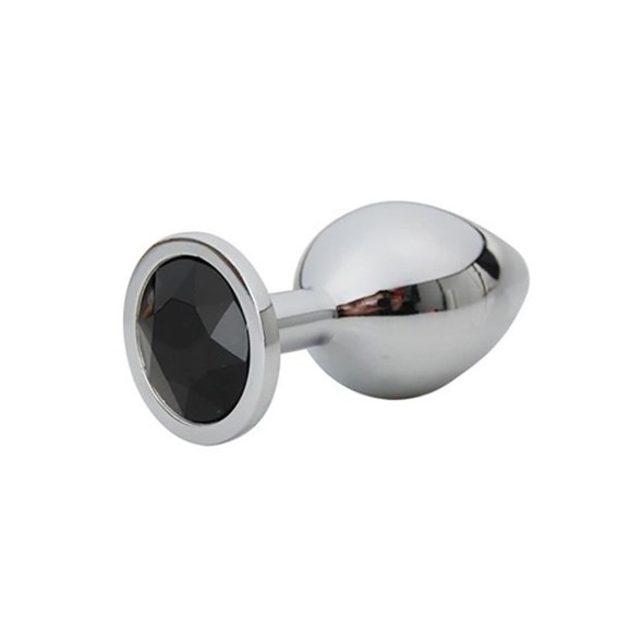 Mały srebrny butt plug z czarnym diamentem