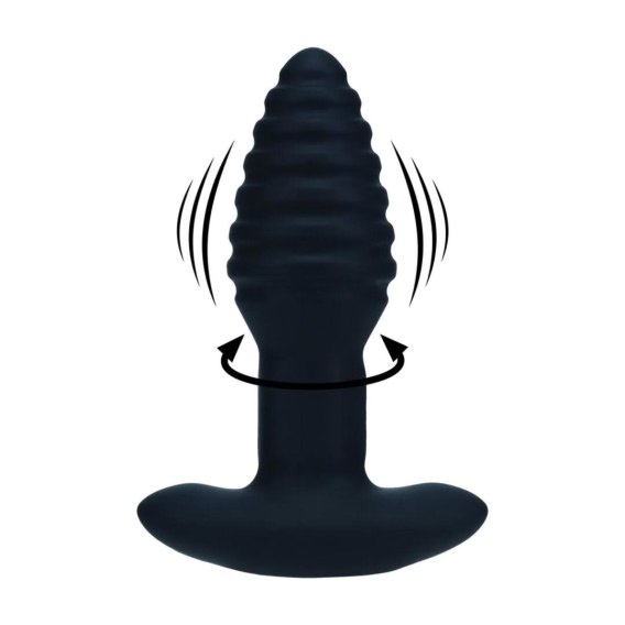 Vibrating and Rotating Ribbed Silicone Anal Plug - Black